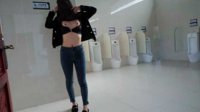 【申精】 停车场厕所肆意露出,引路人小哥前来野战