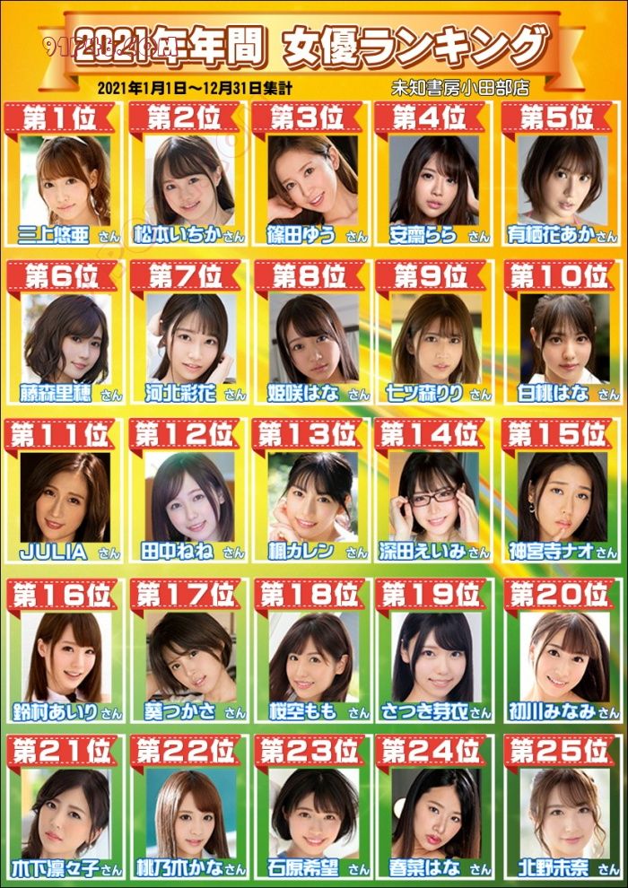 日本国内评选:2021年度AV女优前100名
