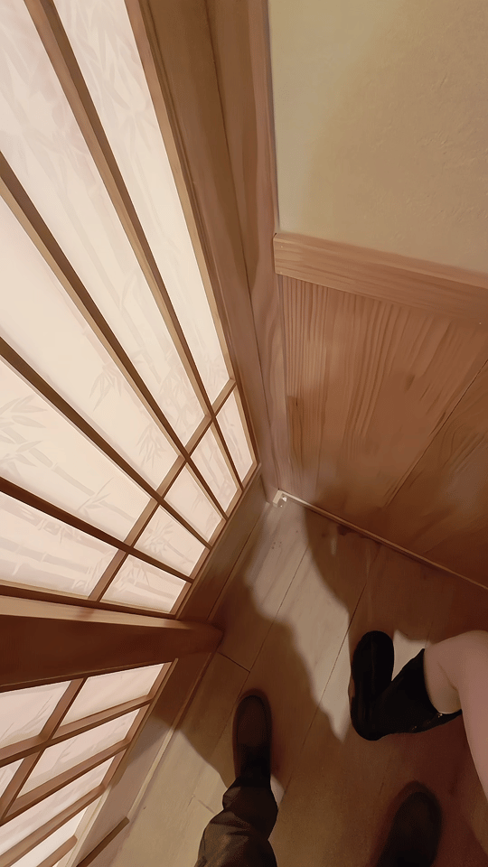 服务员盯着我俩一直看~ 回头一看,原来从外面看推拉门里面,影子动作都一清二楚...